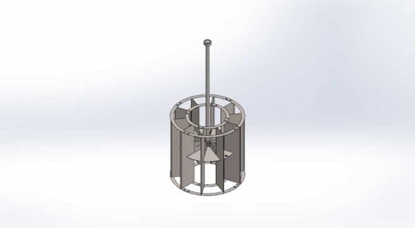 two flat blades at an angle of 45 degrees. The length of the shaft depends on the depth of the tank